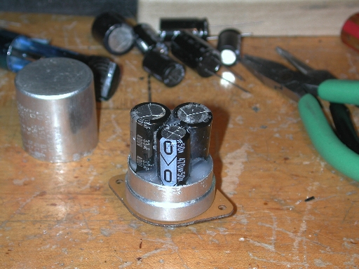 More problematic are the high voltage power supply capacitors, usually multi-sectioned aluminum can types mounted on the chassis top plate. To repair these, you have perhaps four options: