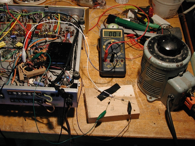 Voltage-Limited Method 1: The voltage-limited methods use a handy device called the variable autotransformer (a.k.a. Variac, General Radio's brand name). Using a high-voltage external power supply, each capacitor is slowly brought up to working voltage by slowly raising the line voltage to the power supply. This can also be done with a variable DC supply with a range from about 50V to 500V, but variacs are cheaper and more common. A resistor can be placed in series to monitor the current, but watching the voltage also can reveal reforming progress; at each variac setting, the voltage will slowly rise until reforming at that voltage is complete.