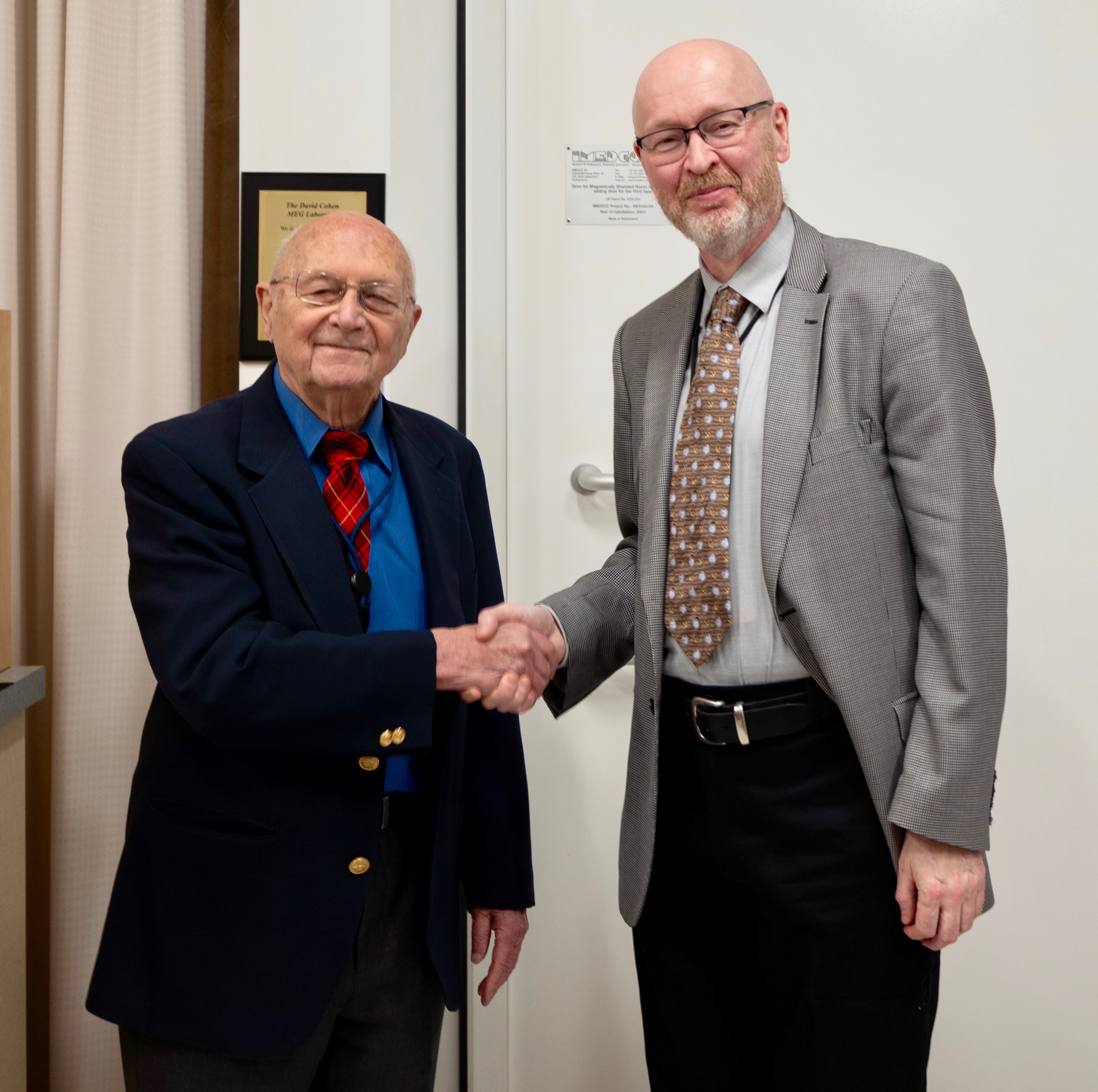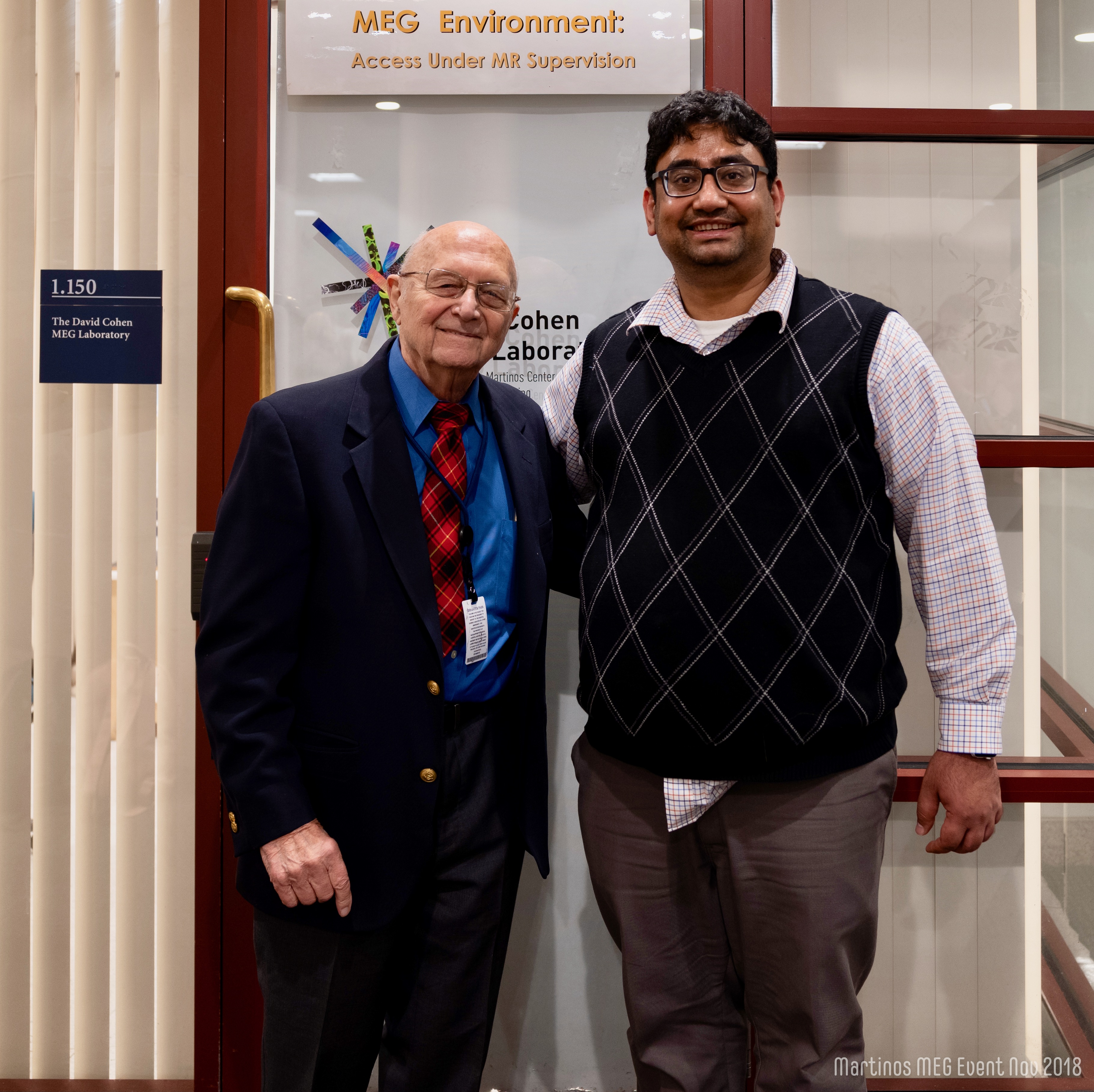 On Friday, Nov. 30, the Martinos Center celebrated two landmark events for its MEG program: MEG Core director Matti Hämäläinen’s promotion to full professor of radiology at Harvard Medical School and the renaming of the Center’s MEG facility in honor of David Cohen, the Martinos faculty member and “father of MEG.” Check out photos from the event below. Photos courtesy of Shasha Li, Marco Loggia, Maria Mody, Dimitrios Pantazis, Gary Boas and MGH Photo.